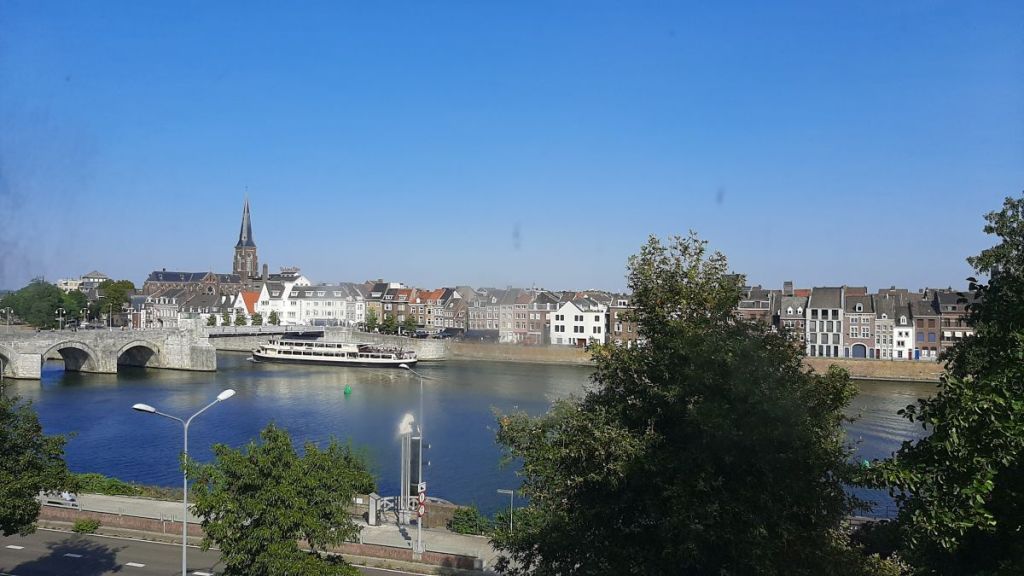 Na drie dagen was het de beurt aan mijn “Abschied” van de stad. Samen met mijn vrouw stond ik nog even stil bij het uitzicht over de Maas, vlakbij de parkeergarage. Links de Martinuskerk van Wijck die Cuijpers ontwierp. De kerk met de zwarte Christus die we op een wandeling nog zagen. Er naast zie je de voormalige brouwerij van Ridder. En links de Middeleeuwse Servaasbrug. We wierpen nog een laatste blik vol weemoed.