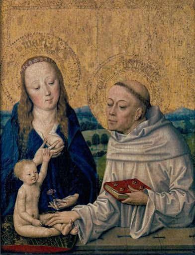 In de late Middeleeuwen werd het steeds belangrijker dat je je kon identificeren met Christus of met een heilige. Daarvoor was Christus vooral een God, die je eerbiedig diende te benaderen en die op eenzame hoogte oordeelde over de mensen. Maar langzaamaan werd het menselijke aspect steeds belangrijker. Bernardus van Clairvaux, stichter van de strenge Cistercienzer orde die voortkwam uit de Benedictijner orde, wilde bewijzen dat Christus ook echt mens was geweest. Zo is er een schilderij waarop je kunt zien hoe hij naar Jezus kijkt om te zien of deze wel geslachtsdelen heeft: Ja hoor, ze zijn er! En kijk ook maar eens naar de borsten van Maria: helemaal echt, er komt melk uit!