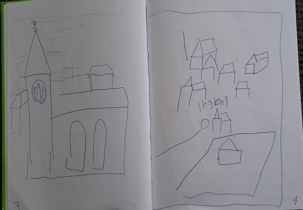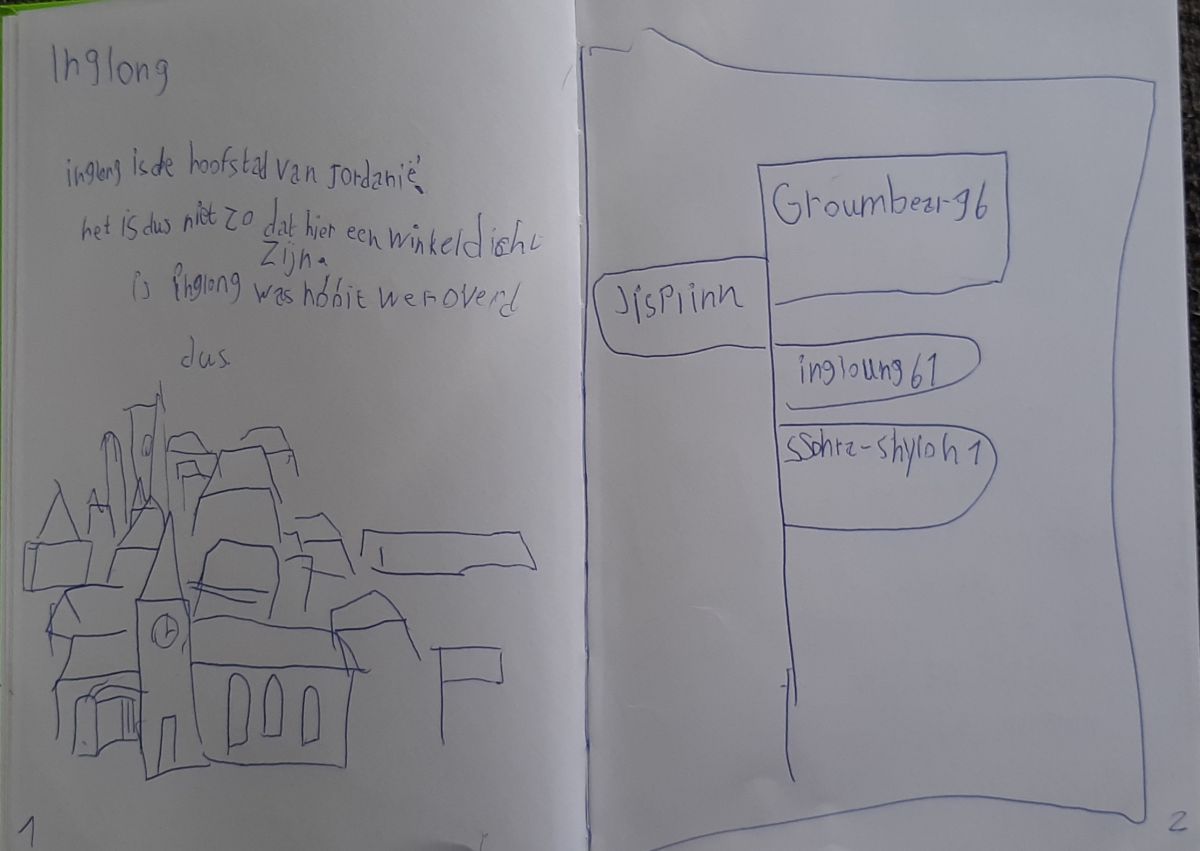 Thuis gaat hij weer verder met allerlei fantasieën. Voor het naar bed gaan luistert hij vaak met zijn vader naar een podcast over de Bourgondiërs. Die zitten nu ook in zijn spel. En in zijn tekeningen.