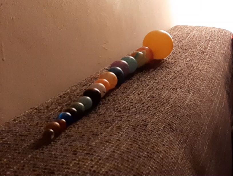Sinterklaas is geweest. Hij had planeetjes gekregen. Hiermee zat hij te spelen en intussen verzon hij in gedachten een film. De planeten werden steeds groter. Op het einde lag een grotere bal. Dat was het universum. In zichzelf neuriede hij intussen “Stille nacht”. In mineur. In een eindeloze herhaling. Alles draait ergens om heen, in een eindeloze cyclus. Een stille nacht in mineur illustreert dit perfect. Zijn broertje en zusje speelden daarentegen gewoon op aarde. Maar hij was veel verder weg. Hij was ergens tussen de sterren, en ervoer in een soort van trance de oneindigheid.