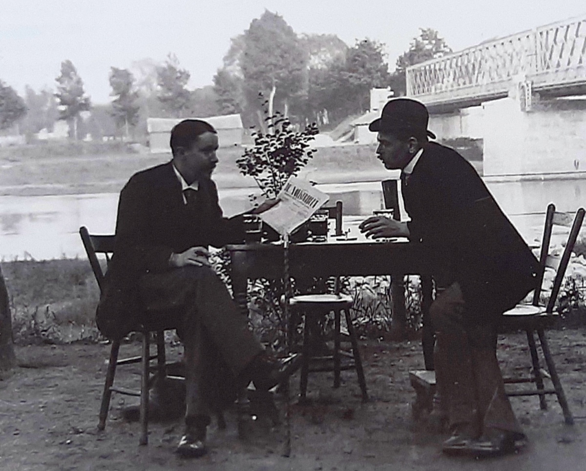 Een van de artikelen in Rura ging over de SDB, de sociaal democratische bond. Dat is de voorloper van de SDAP en dat is weer de voorloper van de Partij van de Arbeid. We leven in een tijd dat er nog geen vrouwenkiesrecht is, dat het mannenkiesrecht beperkt blijft tot de goed verdienende elite en dat als er kiesmannen op lijsten worden geplaatst die ook weer van lijsten af gehaald kunnen worden als ze niet bevallen. In 1888 wordt de kieswet veranderd. Alhoewel het kiesrecht is uitgebreid gaat het om mannen die in een eigen woning wonen. Er worden in de steden kieslijsten gemaakt maar daar kan aan worden gesleuteld. Zo waren op de kieslijst van Roermond de directeur en 12 priesterdocenten geplaatst van het Bisschoppelijk college. Leden van de liberalen vonden dat dat niet kon en probeerden hen er weer vanaf te krijgen. Slechts bij twee professoren lukte dat omdat hun huurwaarde te laag was. (Ze betaalden te weinig huur). Arbeiders stonden niet op de lijst, laat staan al die werklozen. De werkloosheid was zeer hoog in Roermond omdat halverwege de eeuw de een na de andere fabriek failliet was gegaan. Een goede basis voor een socialistische partij zou je zeggen. Nee dus. De almacht was in handen van bisschop Paredis van Roermond die twee dagbladen aan zich had weten te binden. Het derde dagblad, een liberale krant, was geen partij en de bisschop beïnvloedde het volk via zijn eigen bladen. En het volk werd ook beïnvloed in alle parochiekerken natuurlijk, vanaf de kansel. Het aantal liberalen in de raad was inmiddels gereduceerd van een meerderheid tot een minderheid. Liberalen werden afgeschilderd als goddelozen, vrijmetselaars en joden. Kortom tuig. Maar de aanhangers van de socialisten waren nog erger. Hun dagblad, De Volkstribuun, kreeg een Maastrichtse variant die ook in Roermond werd verkocht, getuige onderstaande foto waar een sigaar rokende man bij een terrasje vlakbij de Maasbrug dit blad leest en er zo te zien een heftige discussie ontstaat met een man met bolhoed (Gemeente archief Roermond). Het zijn duidelijk geen arbeiders die het blad lezen, waarschijnlijk gegoede mensen uit liberale kring.