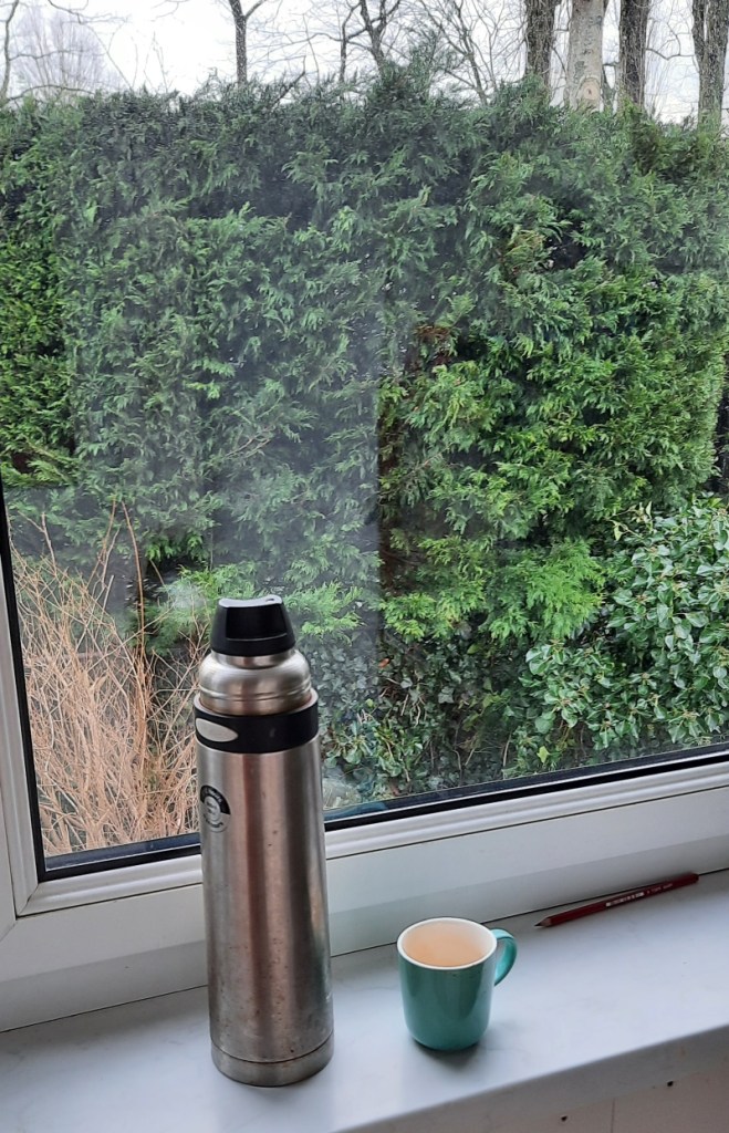 Ik heb de gewoonte om regelmatig ook in ons huis in de randstad tweetalig te communiceren. Vanochtend dronken we samen koffie. Ik schonk in, de koffiekan was daarna bijna leeg.