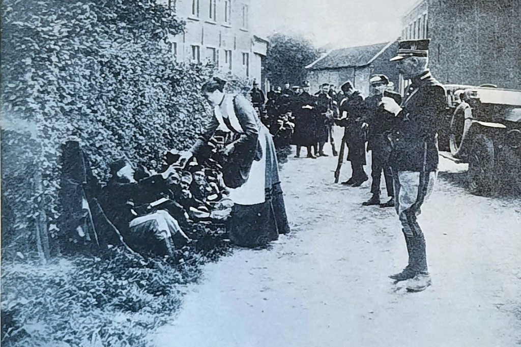 Lenin leefde in de tijd van de eerste wereldoorlog. Net als nu was Nederland ook in die tijd slechts toeschouwer. Terwijl er zich vooral in België en Frankrijk hartverscheurende taferelen afspeelden vergaapten wij ons aan de foto’s die dankzij de snelle ontwikkeling van de fotografie ons land bereikten. En we zetten er commentaar bij. Ik bezit twee jaargangen van de katholieke illustratie, een weekblad van katholieke huize. Het gaat om de jaren 1914 en 1915. De taal die men als bijschrift van de foto’s bezigt zou nu niet meer kunnen: “belangwekkende. interessante foto’s van de vernieling en verwoesting van Namen: wij brengen onze lezers hierbij een serie uiterst interessante foto’s uit het door de Duitschers bezette Namen, welke afkomstig zijn van Duitsche officieren.” Een deel van de foto’s is dus gemaakt door Duitse officieren, die natuurlijk vooral ook willen laten zien hoe welwillend de Belgische bevolking op hun aanwezigheid reageert, zoals bij deze foto uit Aalst.