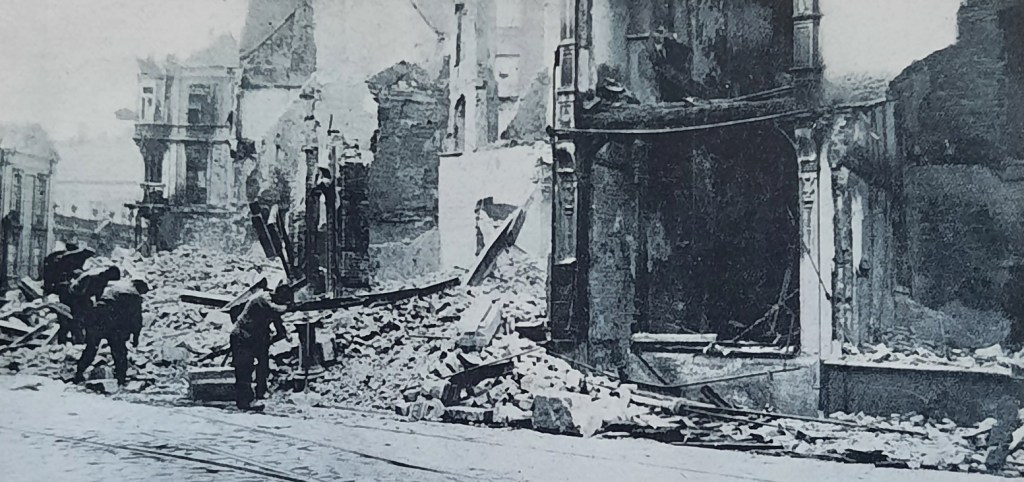 Natuurlijk zijn er ook veel foto’s van verwoestingen te zien, zoals deze foto uit Antwerpen.