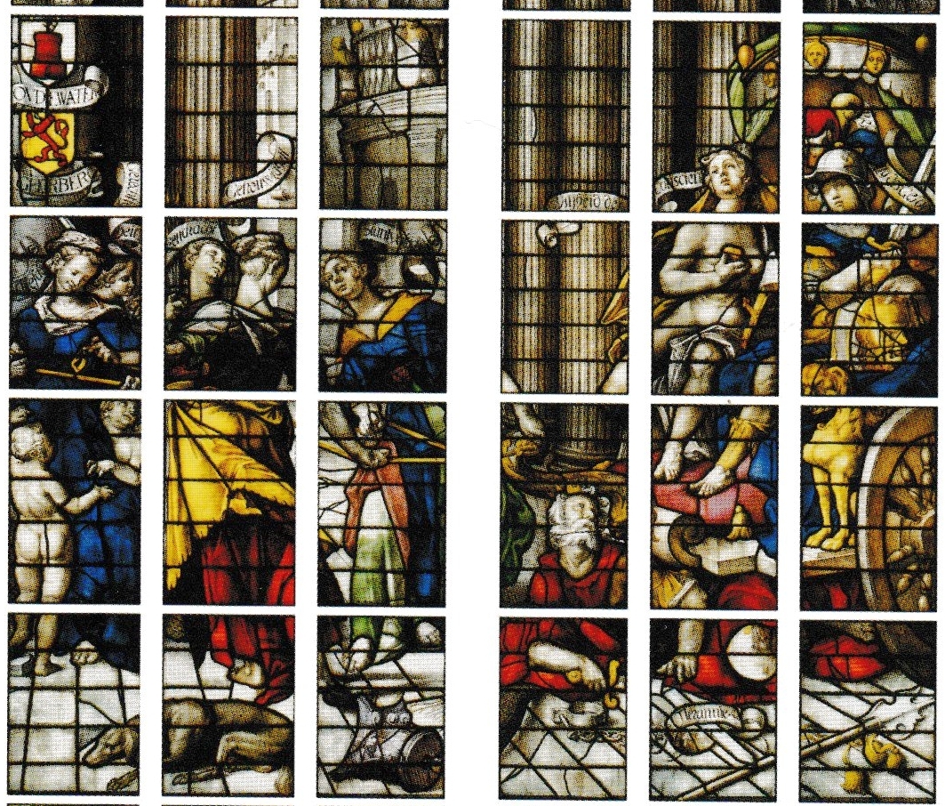 Het eerste glas, “De Vrijheid van Conscientie”, was het glas waar ik zaterdagmiddag als eerste bij bleef stilstaan. Het werd gemaakt in 1595-1596 en het werd gefinancierd door de Staten van Holland. Daarom zijn er ook achttien stadswapens in verwerkt. Het diende duidelijk als een vorm van propaganda. De Noordelijke Nederlanden leken eindelijk bevrijd te zijn van het juk van de Spanjaarden, maar de tachtigjarige oorlog bleek achteraf gezien nog lang niet afgelopen. Het had zomaar anders kunnen lopen. Zou dat glas dan nadien vernield zijn? Enfin, ondanks nog enkele spannende momenten in de latere geschiedenis bleek het uiteindelijk goed af te lopen. Zo kunnen we nu nog steeds kijken naar de Hollandse propagandamachine van 1595.