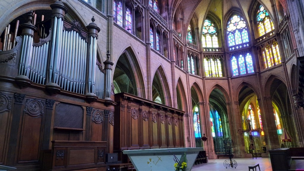 Er zijn twee belangrijke kerken in deze stad. De Romaanse voormalige abdijkerk St. Etiënne en een gotische kathedraal. De abdijkerk bleef buiten schot, maar de hoge kathedraal werd gebombardeerd en raakte zwaar beschadigd. Maar net zoals ook de Duitsers besloten om hun culturele erfgoed zo goed en zo kwaad mogelijk te herstellen, zo werd ook deze kerk in Nevers door de Fransen weer hersteld. Onherstelbaar was helaas het orgel en waren ook alle glas-in-lood-ramen. Er is nu een nieuw orgel aanwezig en er zijn nieuwe, prachtige glas-in-lood-ramen. Op dat oude orgel heeft in de tijd van Bach Louis Marchand nog gespeeld toen hij er organist was. (Hij kreeg daar zijn eerste aanstelling toen hij pas vijftien jaar was..)