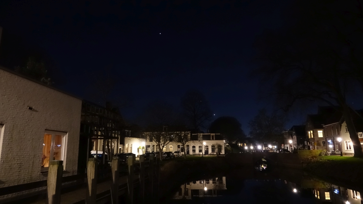 Gisteravond kwart over zeven in Schoonhoven. De enorm heldere bol heel laag, dat is Venus. Veel hoger zie je Jupiter.