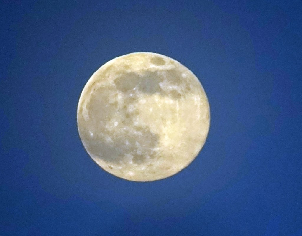 Enkele dagen ervoor was het volle maan. De tweede foto is enkele uren later genomen toen het al helemaal donker was.