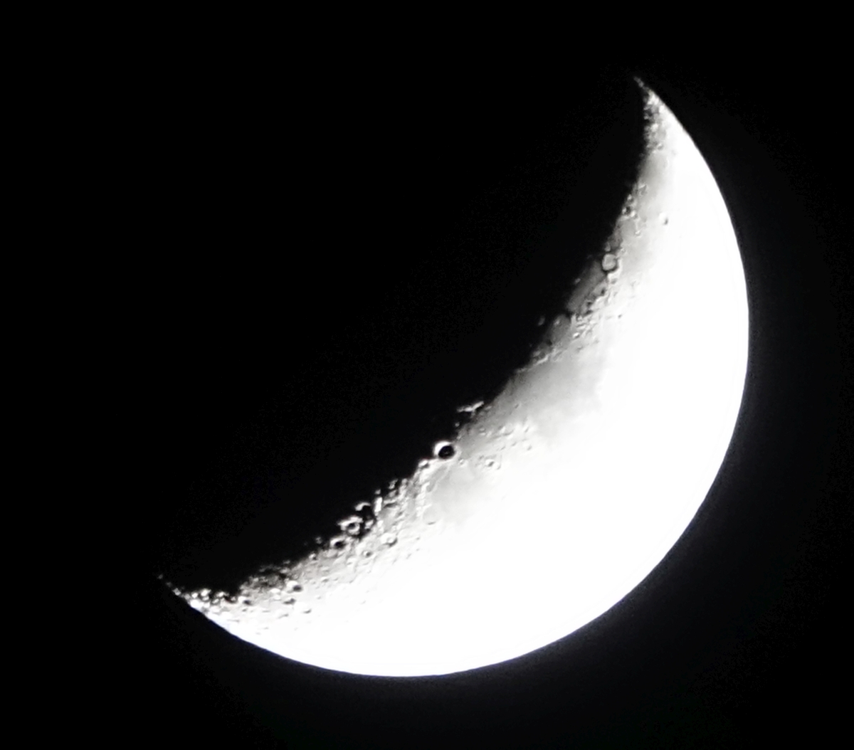 Bij de foto die ik van de maan maakte zie je een aantal kraters, de meest opvallende is de zogenaamde Theophilus krater met een diameter van 110 kilometer. Morgen zie je weer andere kraters, want dan is er weer een nieuw stukje waar de zon het reliëf goed van laat zien. Door zo elke avond te kijken gedurende een maand tijd kon indertijd Galileo Galilei een prachtige reliëf-maquette maken van de maan. Elke dag tekende hij er een stuk bij en hij rekende uit hoe hoog en diep alles moest zijn door te kijken naar de schaduwen.