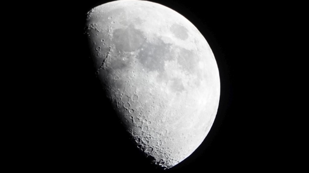 En zo ziet de maan er deze avond van dichtbij uit. Vergelijk hem maar eens met de foto die ik eergisteren van de maan maakte: nu zijn er alweer andere kraters te zien.