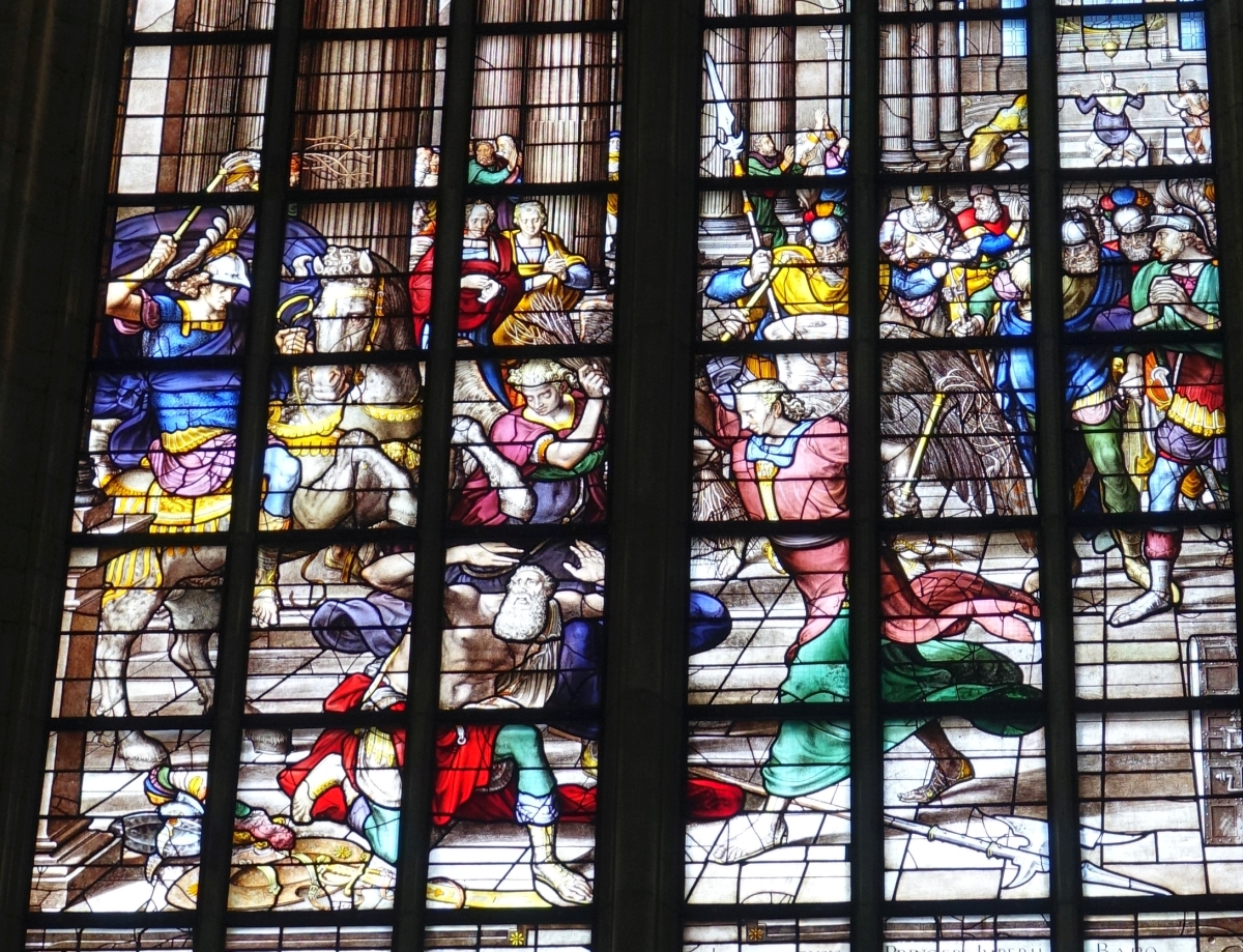 Eerder schreef ik al enkele artikelen over de Goudse glazen en over de Goudse propagandaglazen. Nu bespreek ik de glazen van het noordelijk transept. Dat zijn er dus 7, de glazen 2 tot en met 8.