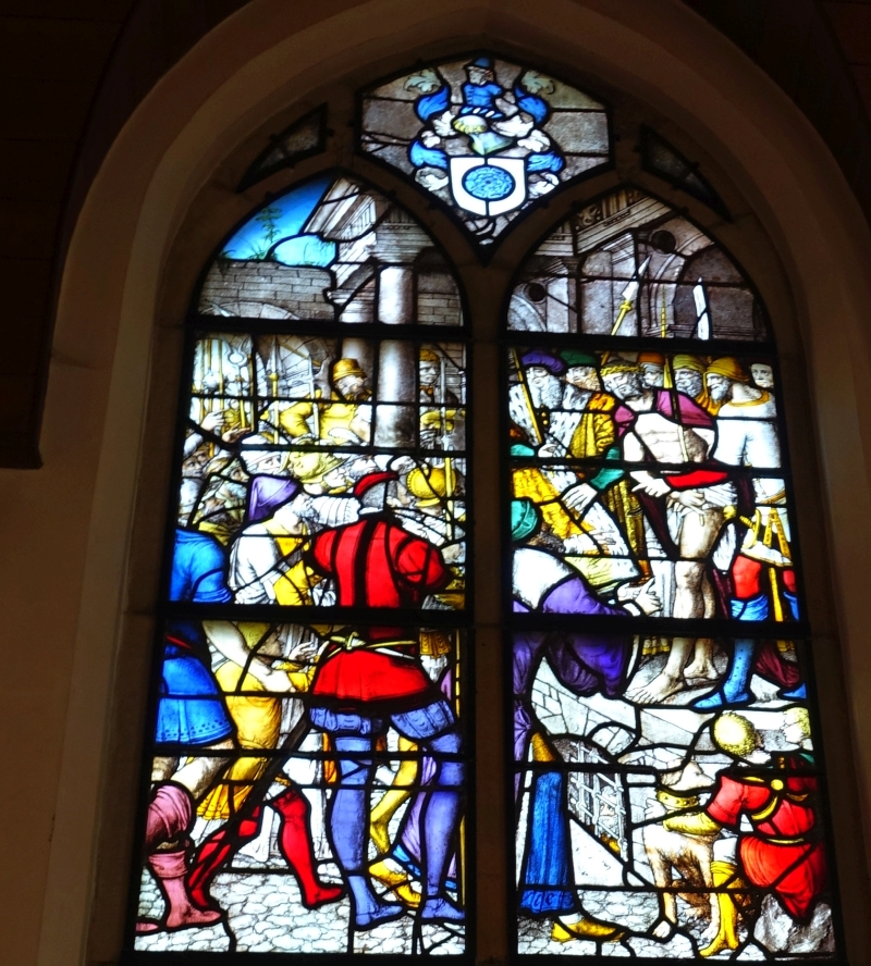 Zo staan we dan nu in de prachtige van der Vormkapel en richten ons op de eigenlijke afbeeldingen die boven de afbeeldingen van de opdrachtgevers staan. Deze zeven glazen gaan allemaal over het einde van het leven van Jezus. Bij de reguliere Augustijnen waren de glazen bedoeld als inspiratie voor het gebed: je richtte je tot Jezus en dacht aan een facet van zijn leven. Die functie hebben de glazen nu opnieuw gekregen. De Van der Vormkapel is nadrukkelijk een stiltekapel. We zien het hele lijdensverhaal, van de gevangenneming tot en met Pinksteren, maar het valt op dat twee of misschien wel drie glazen ontbreken: waarschijnlijk het glas met Jezus aan het kruis en waarschijnlijk ook het glas met de graflegging is er niet bij. Zijn ze verloren gegaan bij het verplaatsen in 1580 of moesten ze misschien nog gemaakt worden? Zeven glazen zijn er wel te zien:
