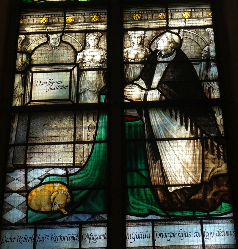 - Glas 60, Nicolaas Ruysch. Hij was thesaurier bij het kapittel van Oudmunster in Utrecht, Hij ging dus over het geld van de kanunniken aldaar. In Utrecht waren veel kapittelkerken en sommigen kapittels waren erg rijk.