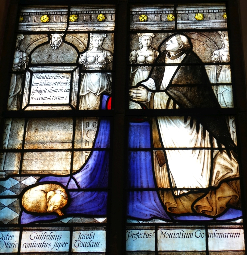 - Glas 63, Willem Jacobsz. De kanunnik Willem Jacobsz. werd in 1554 overste of rector van het klooster van Sint Marie. Dit klooster is het meest welvarende klooster van Gouda geweest. De overgang van de stad naar het prinsgezinde kamp in 1572 betekende het einde van het klooster. Willem Jacobsz. was al gedurende korte tijd nog voor de komst van de geuzenleider Lumey gevangengezet, maar hij was weer vrijgelaten. Ternauwernood konden Gouwenaars voorkomen dat zijn klooster in vlammen opging. Het kloostercomplex werd wel geplunderd onder leiding van “Maerten de kerkbreeker”. Ook het leven van Willem Jacobsz. werd bedreigd. Volgens het dagboek van de prior van het nabijgelegen Regulierenklooster, Wouter Jacobsz. Maes, zou Willem Jacobsz op kerstavond 1572 in zijn huis zijn overvallen door “rabauwen”, die hem dreigden op te hangen, maar hij wist aan hen te ontkomen. Willem Jacobsz. overleed kort daarna, in 1573 en daarmee kwam tevens een einde aan het rectoraat van dit Goudse klooster. Het kloostercomplex werd ontmanteld en deels bestemd om als opvang van melaatsen te dienen.