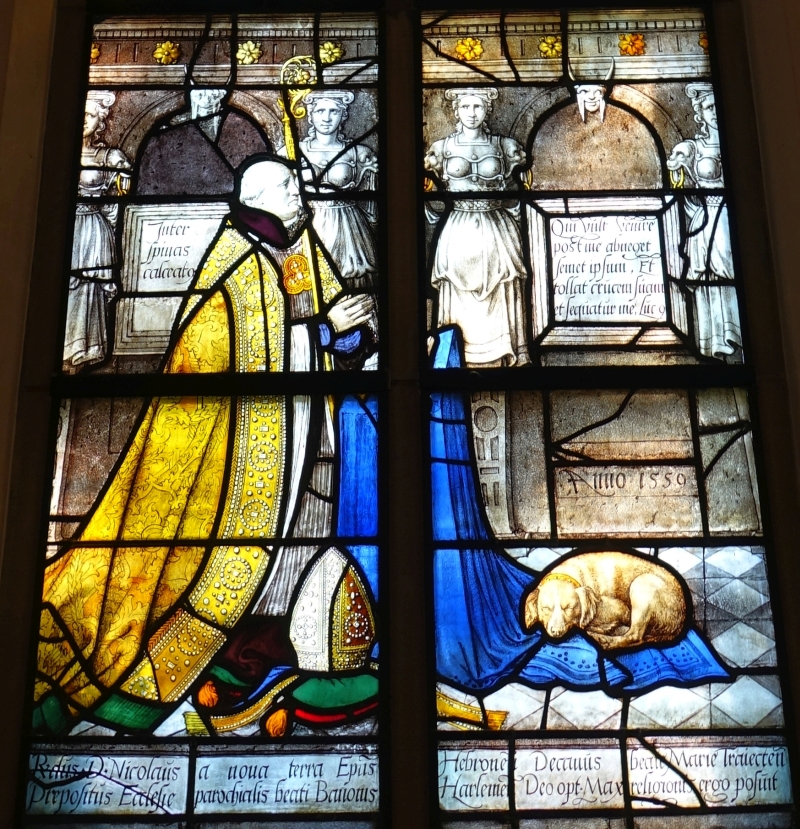 - Glas 60, Nicolaas Ruysch. Hij was thesaurier bij het kapittel van Oudmunster in Utrecht, Hij ging dus over het geld van de kanunniken aldaar. In Utrecht waren veel kapittelkerken en sommigen kapittels waren erg rijk.