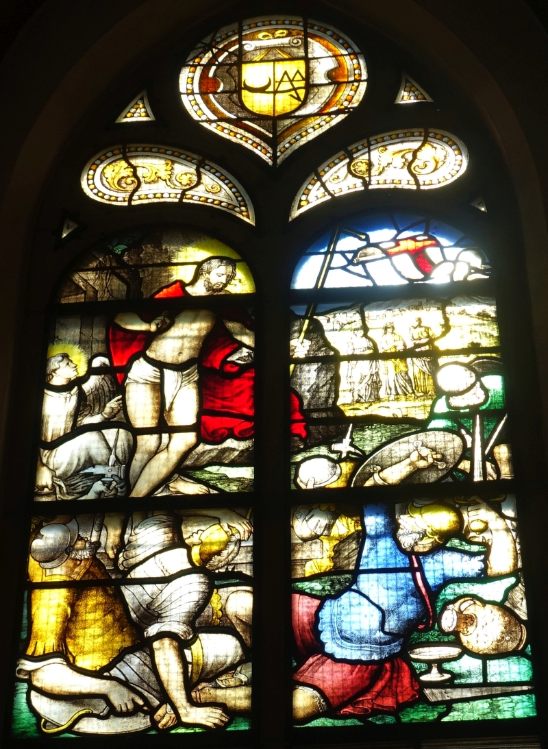 Zo staan we dan nu in de prachtige van der Vormkapel en richten ons op de eigenlijke afbeeldingen die boven de afbeeldingen van de opdrachtgevers staan. Deze zeven glazen gaan allemaal over het einde van het leven van Jezus. Bij de reguliere Augustijnen waren de glazen bedoeld als inspiratie voor het gebed: je richtte je tot Jezus en dacht aan een facet van zijn leven. Die functie hebben de glazen nu opnieuw gekregen. De Van der Vormkapel is nadrukkelijk een stiltekapel. We zien het hele lijdensverhaal, van de gevangenneming tot en met Pinksteren, maar het valt op dat twee of misschien wel drie glazen ontbreken: waarschijnlijk het glas met Jezus aan het kruis en waarschijnlijk ook het glas met de graflegging is er niet bij. Zijn ze verloren gegaan bij het verplaatsen in 1580 of moesten ze misschien nog gemaakt worden? Zeven glazen zijn er wel te zien: