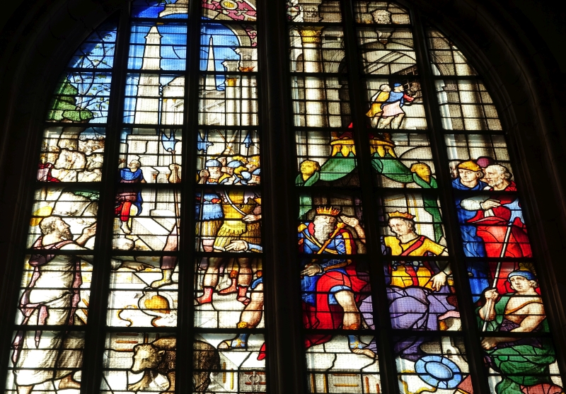 De Sint Janskerk in Gouda is een gotische kerk, gewijd aan Johannes de Doper. Een groot deel van de oudste glazen, van nog voor de reformatie, bevindt zich in het koor en gaat over voorstellingen die te maken hebben met deze heilige. In een eerder blog kwamen de glazen 9 tot en met 13 aan bod. Nu bespreek ik de glazen 14 tot en met 19. Ook deze glazen gaan over het leven van Johannes de Doper.