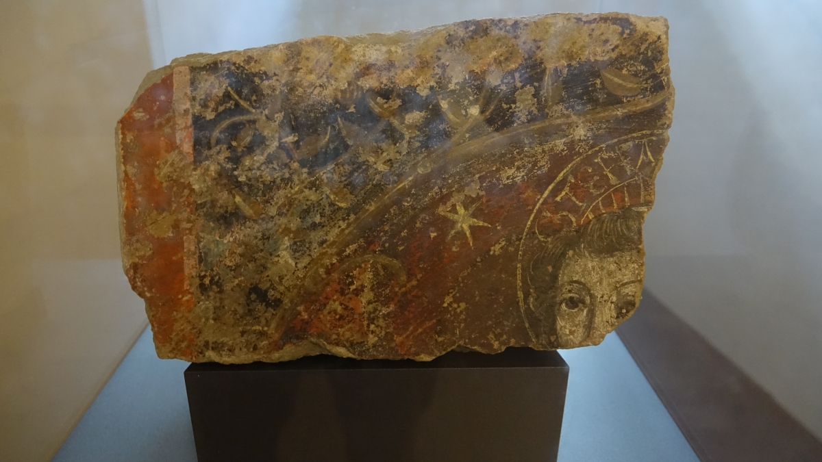 Van de eerste karolingische kathedraal is vrijwel niets bewaard gebleven. Wel kunnen we een fragment van een kamerschildering in de crypte zien. Daar zien we ook een Merovingisch kruis.