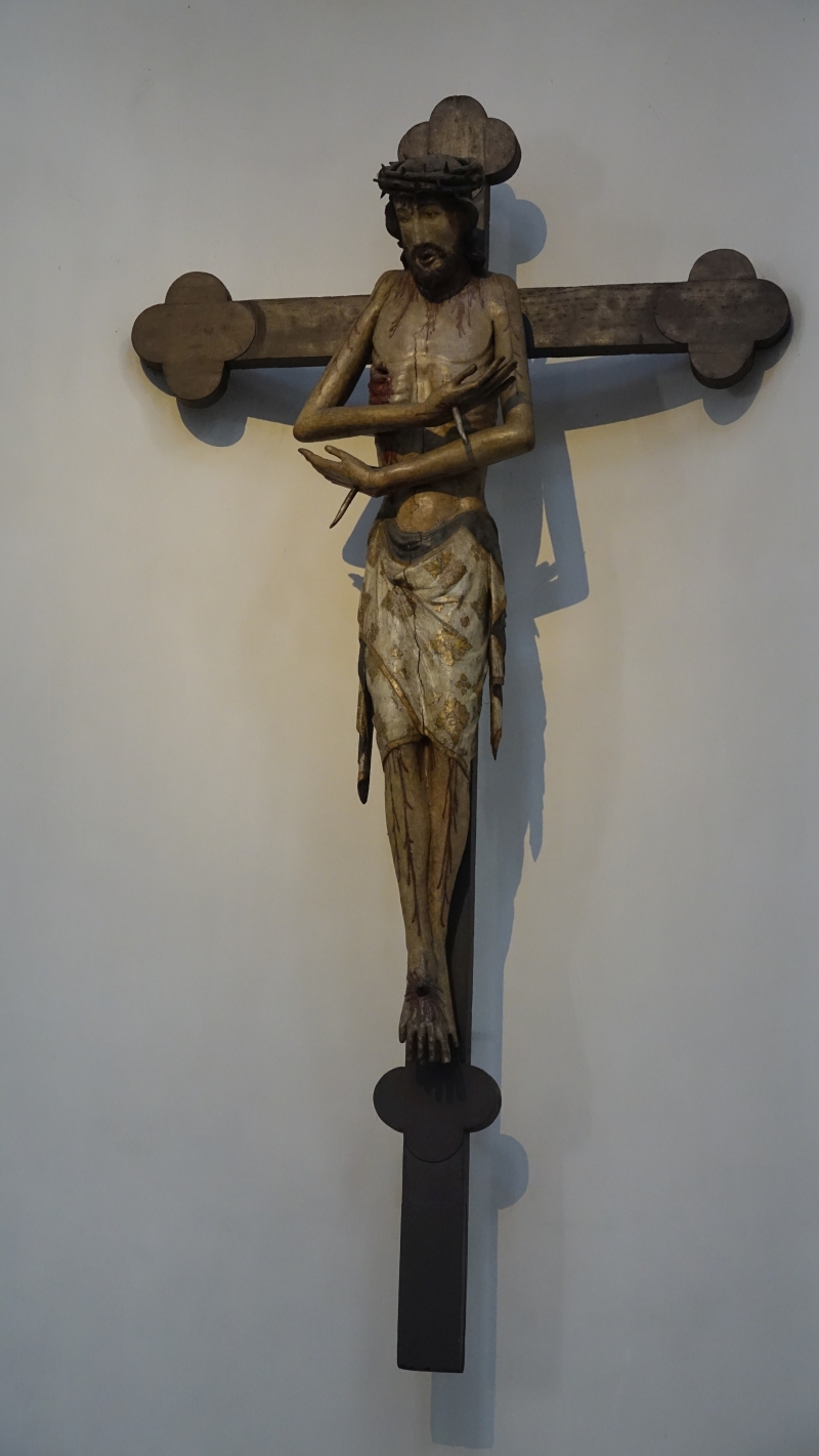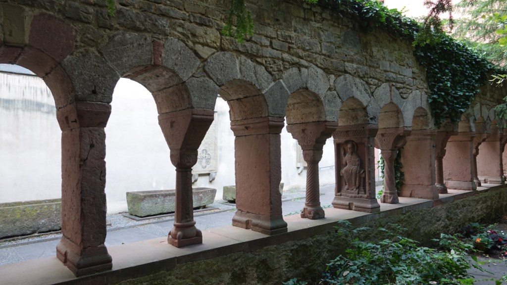 Er is nog veel meer te zien in de kerk. Ik laat nog drie dingen zien. Een heel mooie middeleeuwse “man van smarten”, een beeld van de Heilige Bonifatius en een gereconstrueerde muur in de kloostertuin.