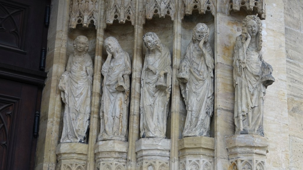 Een mooie afbeelding van deze maagden zien we aan de buitenkant van de “Obere Pfarre” in Bamberg waar we afgelopen zomer waren: